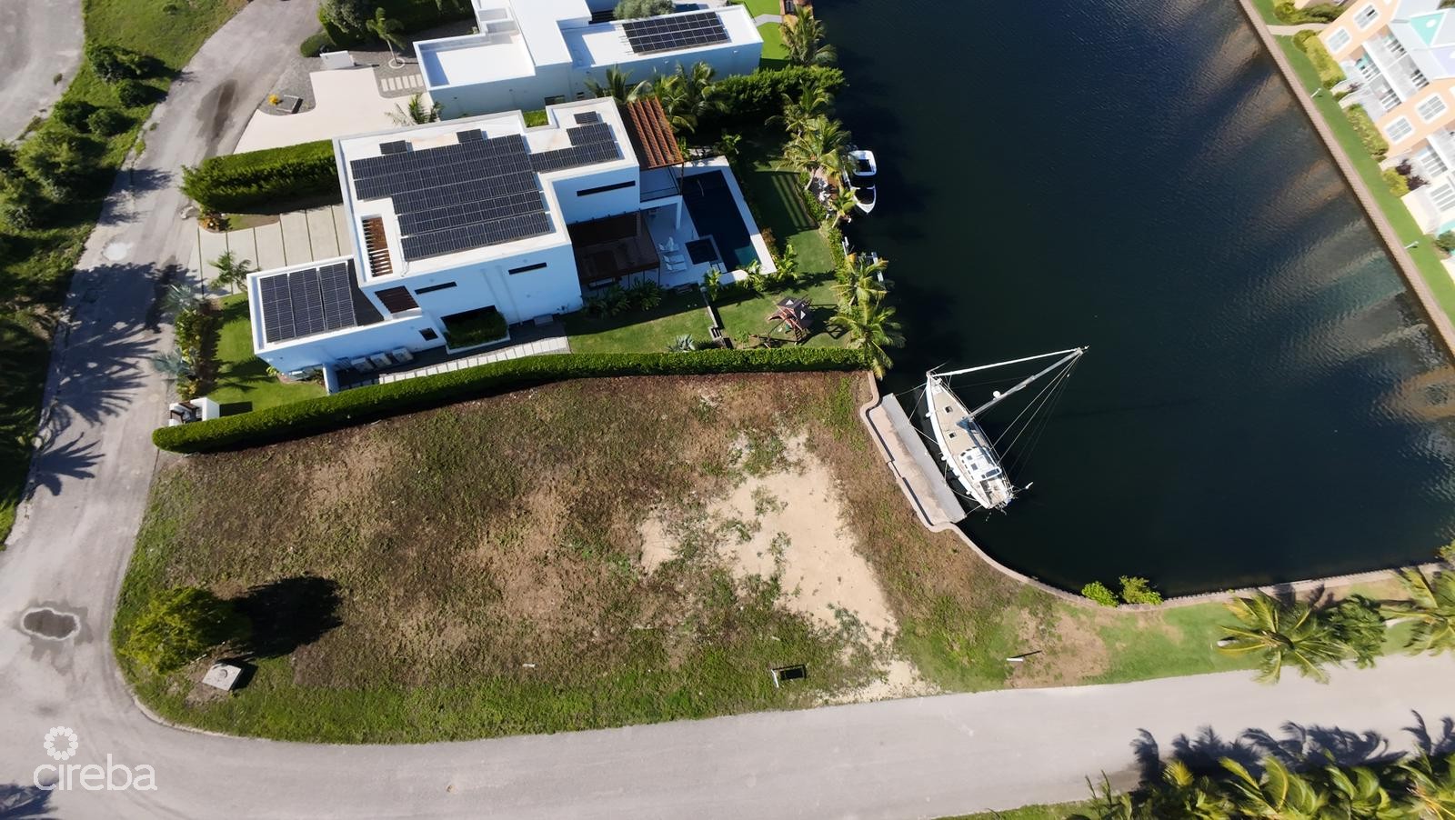 Amazing corner lot with dock - corner of Grand Isle Way and Waterside Crescent. One of the largest and last available canal lots at 13,909 sq ft. Excellent views, located across the water from the Careenage. A hidden treasure.