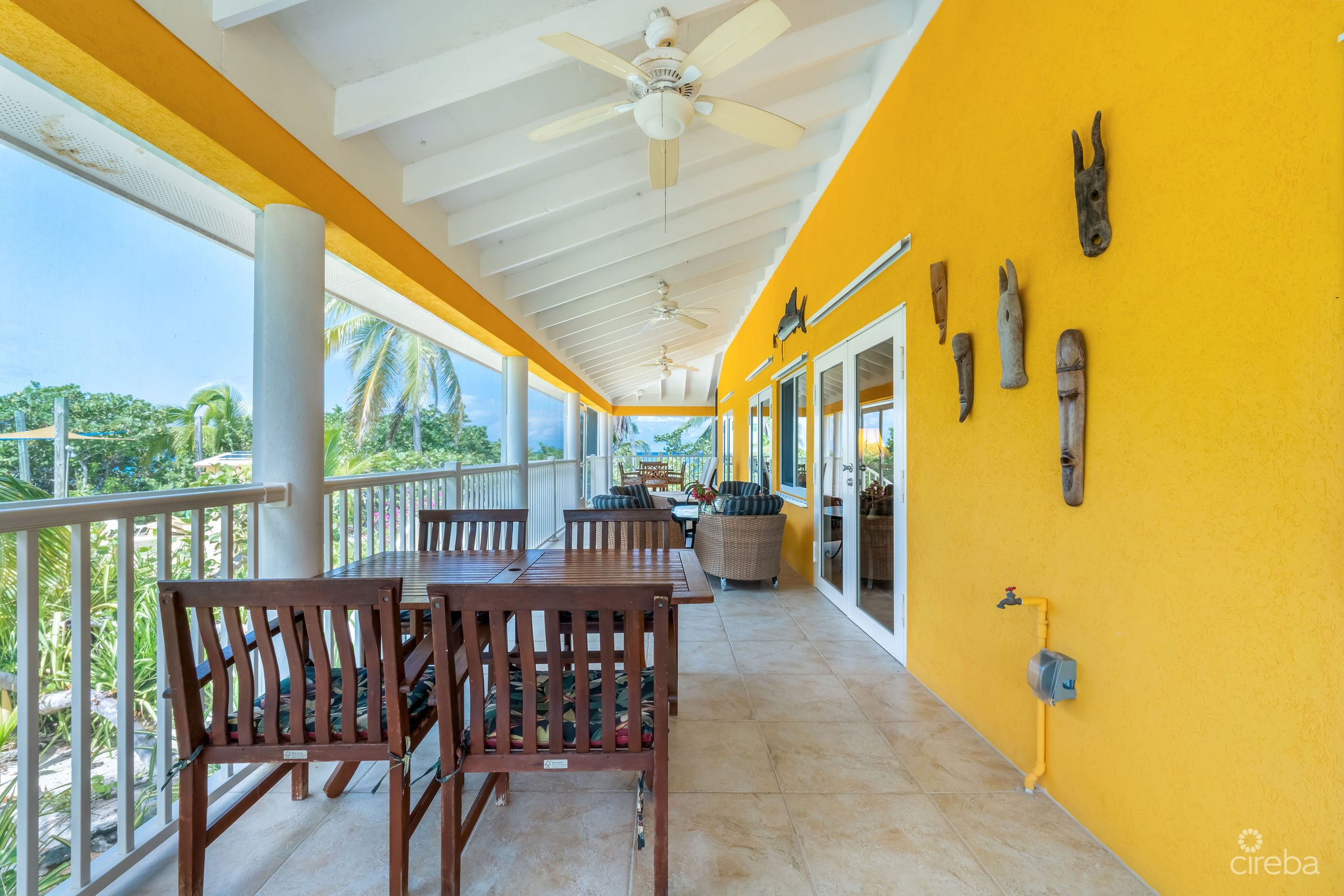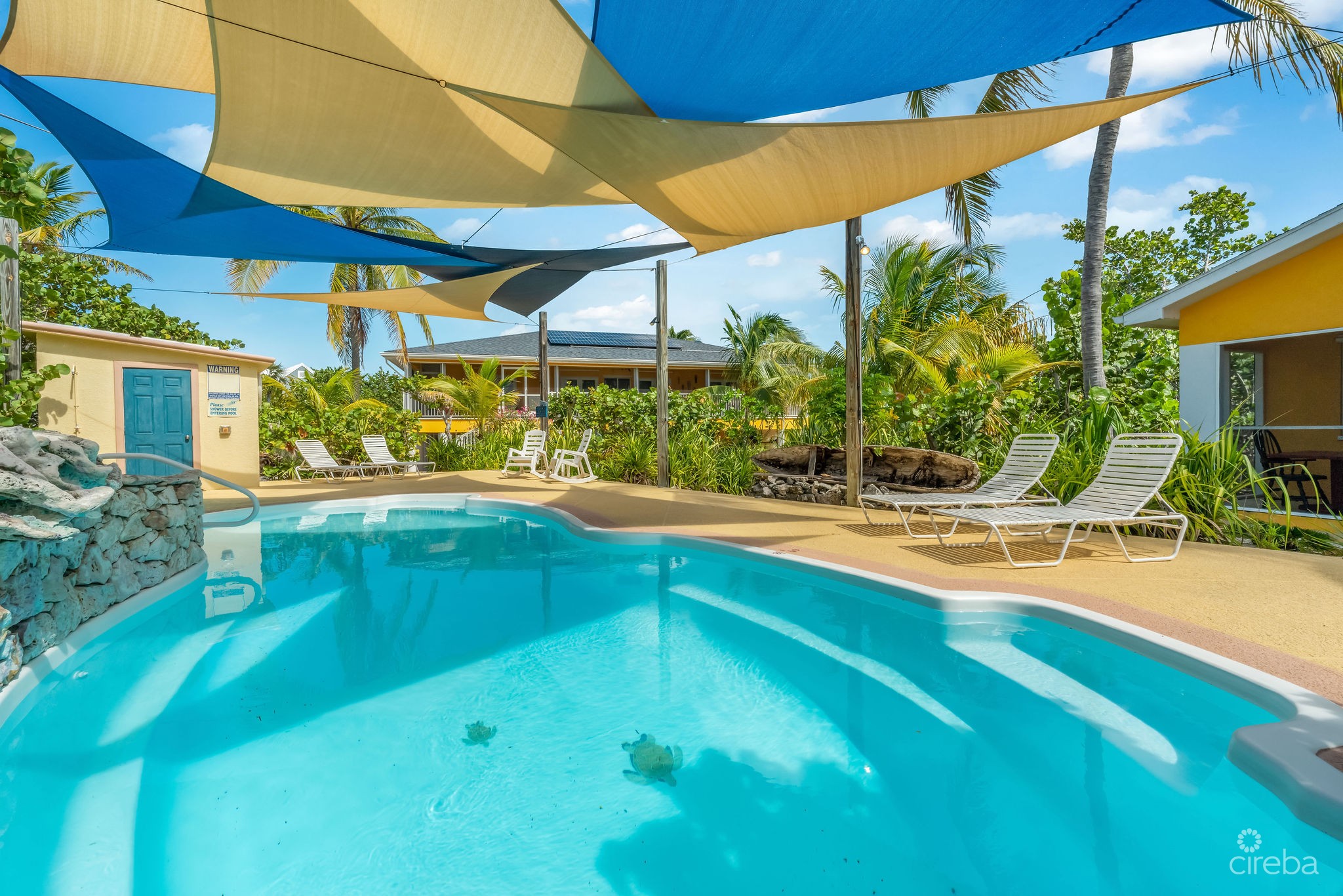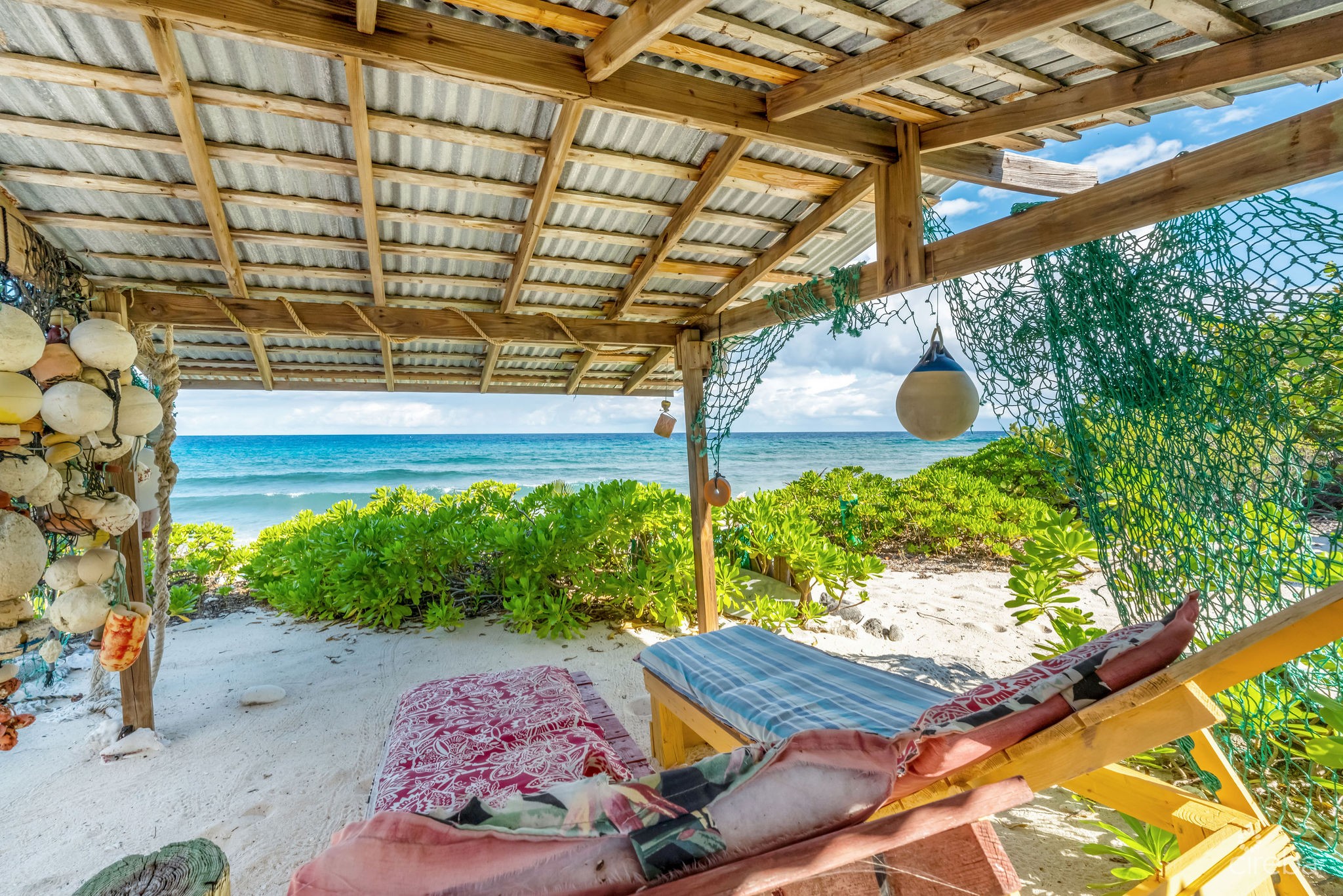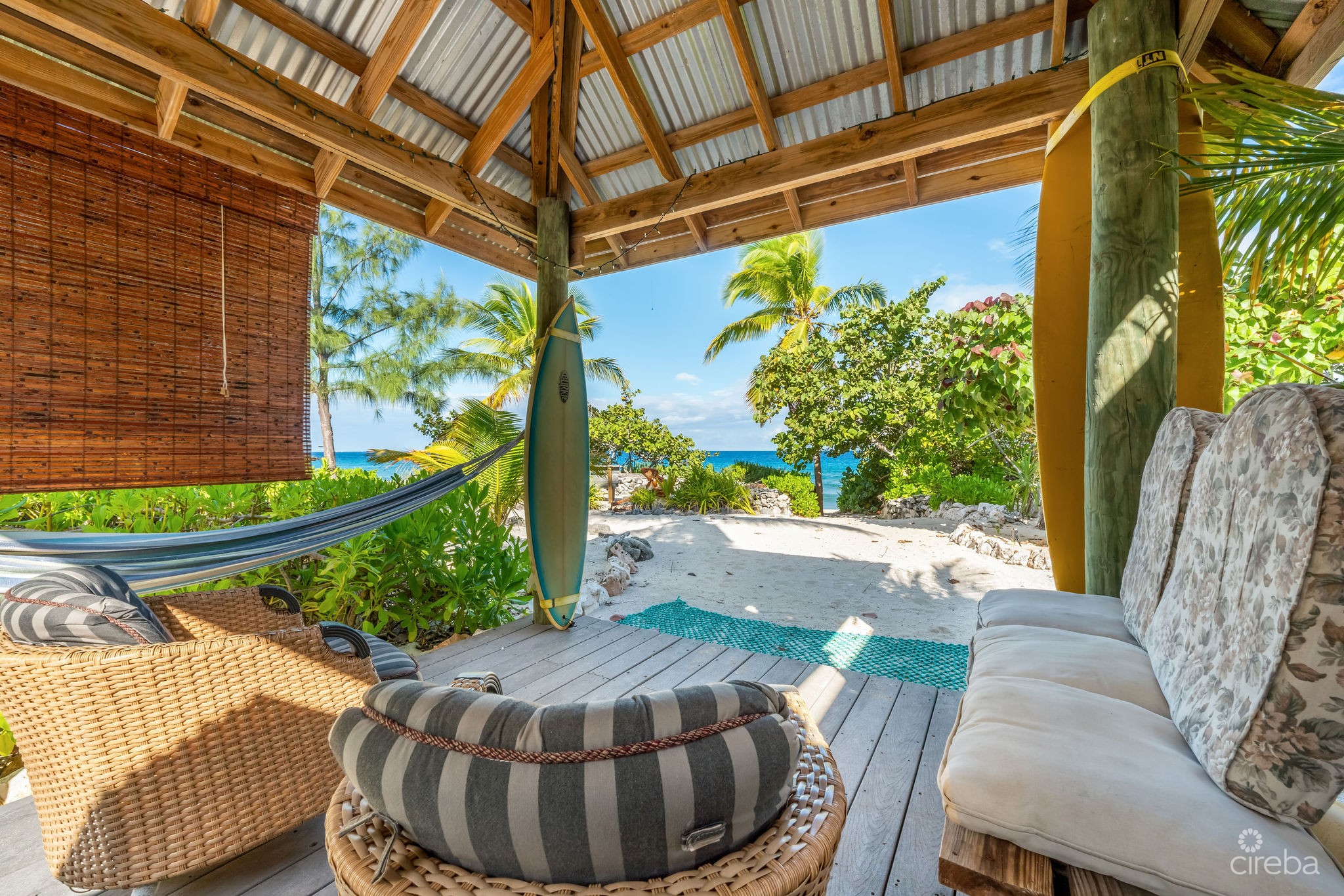 Located on arguably one of Cayman Bracs best beaches, Tropical Runway is a 2 cottage 4 bed and 1 bed collection designed and built by the current owners as their winter oasis but also as a resort rental property. Despite the currents owner passion to be in Cayman Brac as often as possible this property is a good performer on Air B n B and VRBO and the homes continue to attract repeat guests and multi-generational families who value privacy and tranquility with oceanfront activities at their finger tips. The main house has 2 bedrooms on the main living floor along with the kitchen and lounge which is 20+ feet about sea level support by 2 ground floor bedrooms down on the sand, a tip toe away from the properties pool and beach. The main house has a wrap around porch with a sun deck and BBQ area and a very large screened in lounge which provides all day shade. The main dining room is also in this relaxed space. The current owners are avid fishermen and experienced Scuba Divers so the garage is set up to support that passion.