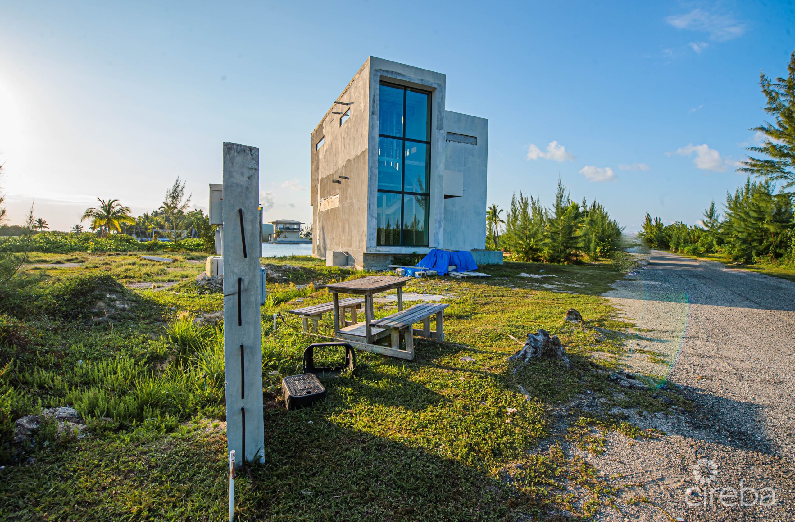Amazing views of the canal and North Sound from one of the most secluded gated developments in Grand Cayman. The house is under construction and is sold as is. It is built with ICF walls and roof. An extremely efficient property with three bedrooms and two and a half bathrooms. All rooms have a great view. One of the few large lots left in Grand Cayman with .87 of an acre. The property boasts two lots and the current property is a guest house next to the canal. There is room for a 1500 sq ft or larger house on the other lot.