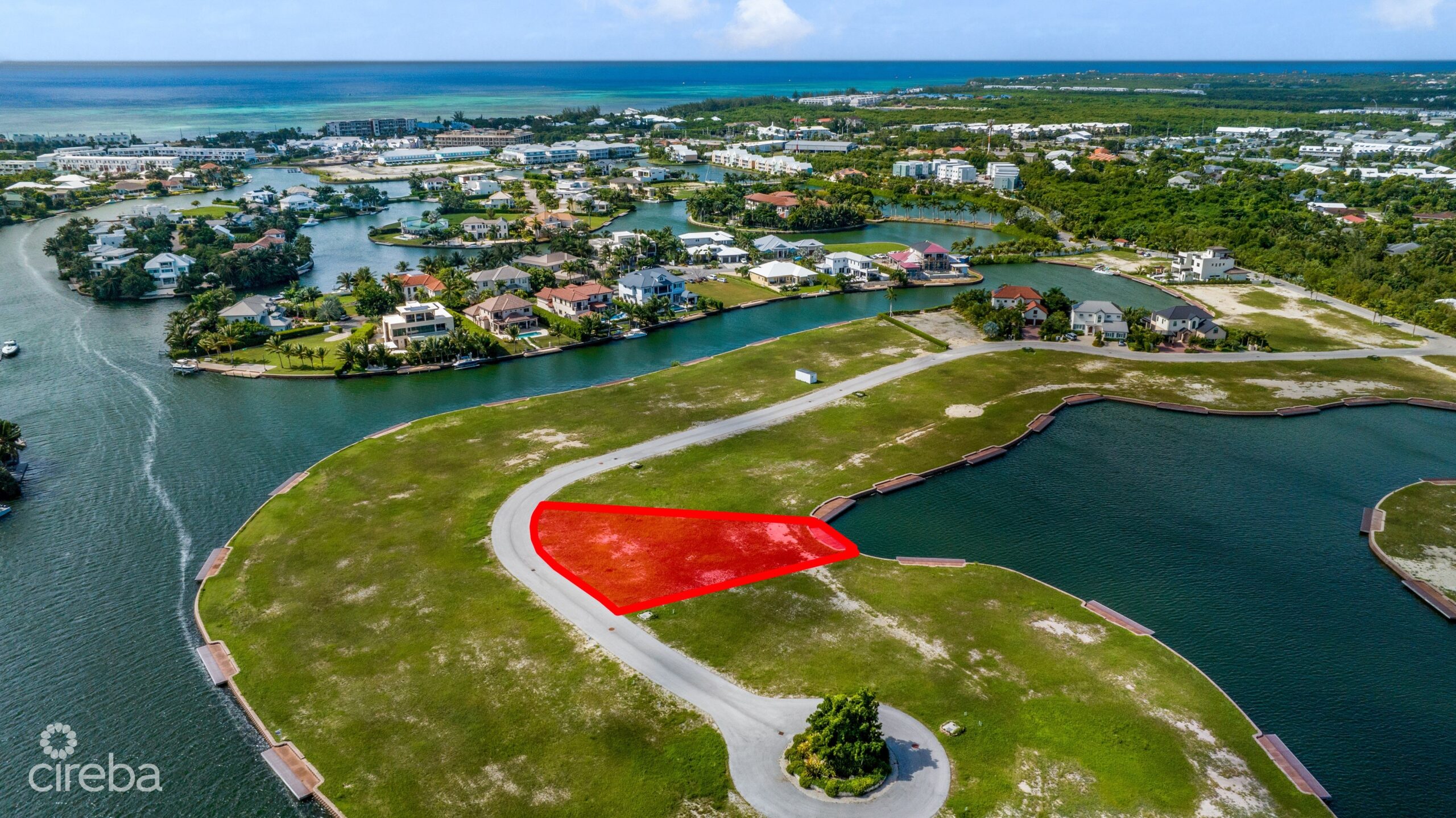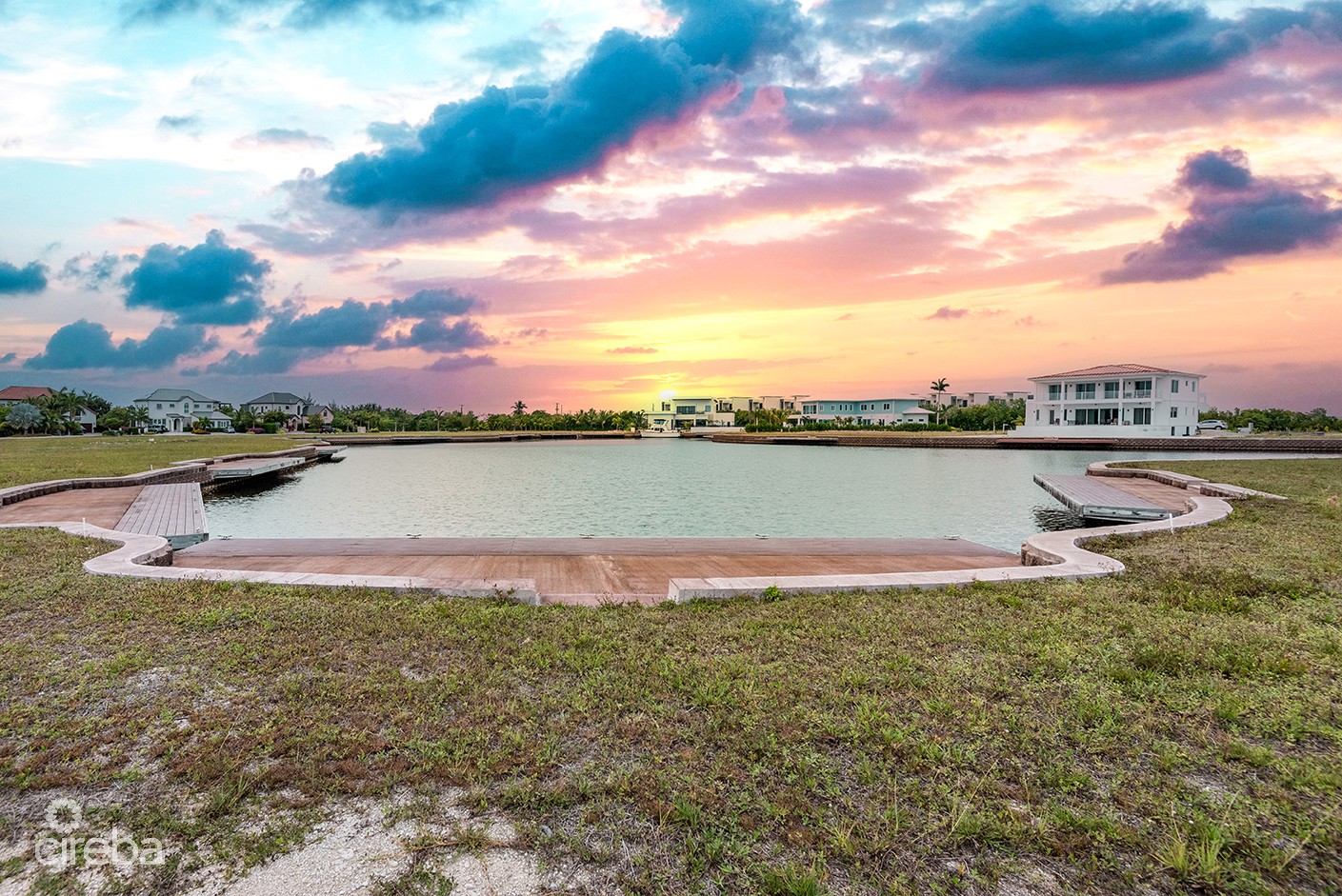 Imagine beautiful sunset views from this idyllic west facing lot in the gated community of Harbour Reach in Grand Harbour. Includes plans for a stunning 5,750sq ft house designed by renowned architects Trio Architecture. Planning permission approved & strata approved. Construction drawings complete, along with solar, pool & landscape design & interior design concept. The unique shape at the widest part of the canal together with the location of the lot provides impressive street frontage and a beautiful view over the lagoon portion of the Harbour Reach canal - the widest part of the canal & greatest distance from opposite side neighbours. The rear of the property faces west for afternoon sun in the pool and beautiful sunset views across the water. Boat dock included for direct access onto the north sound.Total lot size 14,648 sq ft / 0.34 acres.