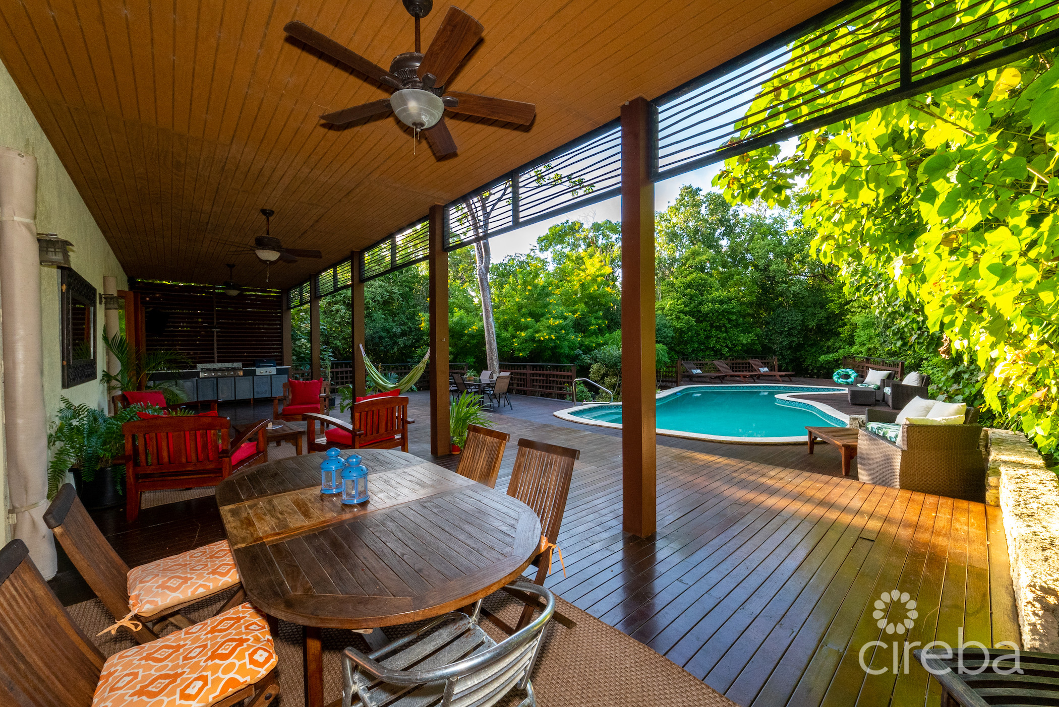 Nestled on over an acre of vibrant tropical jungle in the elevated region of North Side, this one-of-a-kind gem welcomes you with a captivating Balinese-style design. Step into the enchanting indoor/outdoor courtyard adorned with a koi pond and hickatee turtles,