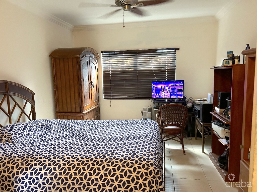 This fixer is a semi-detached unit located in a family-friendly complex that has great potential to be used as a family home or investment property. It features an outdoor entertainment space and is configured with a master bedroom and an ensuite bath on the ground floor, along with a laundry closet, a powder room, and a kitchen living/dining area. Upstairs, there are 2 bedrooms and 2 baths. The unit would benefit from some TLC but would be an ideal opportunity for someone who is creative and wants to put their stamp on the space. The property is located near the town center, schools, UCCI, Lions Pool, Field of Dreams/YMCA, and the Truman Bodden Sports Complex.
