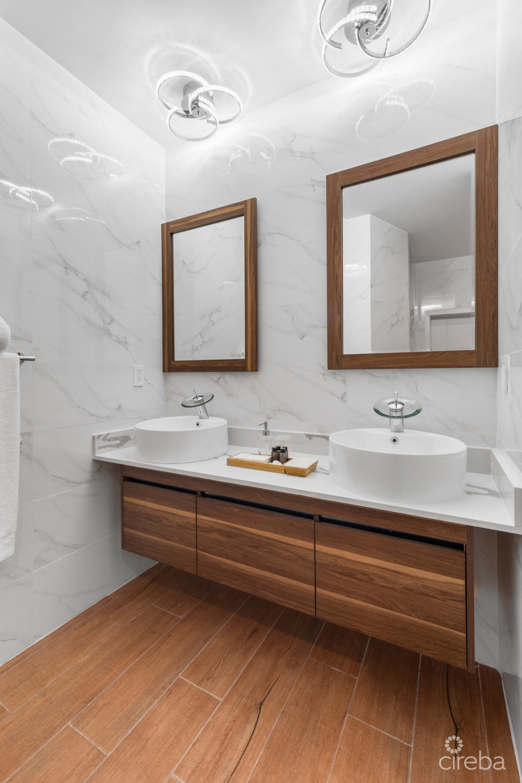 As you step through the Grand front doors, they'll be greeted with breathtaking, panoramic views of the Caribbean Ocean through magnificent glass Doors. The open floor plan, accentuated by eleven-foot ceilings and an awe-inspiring blue granite wall, offers elegance and seamless flow from the dining area to the living space.