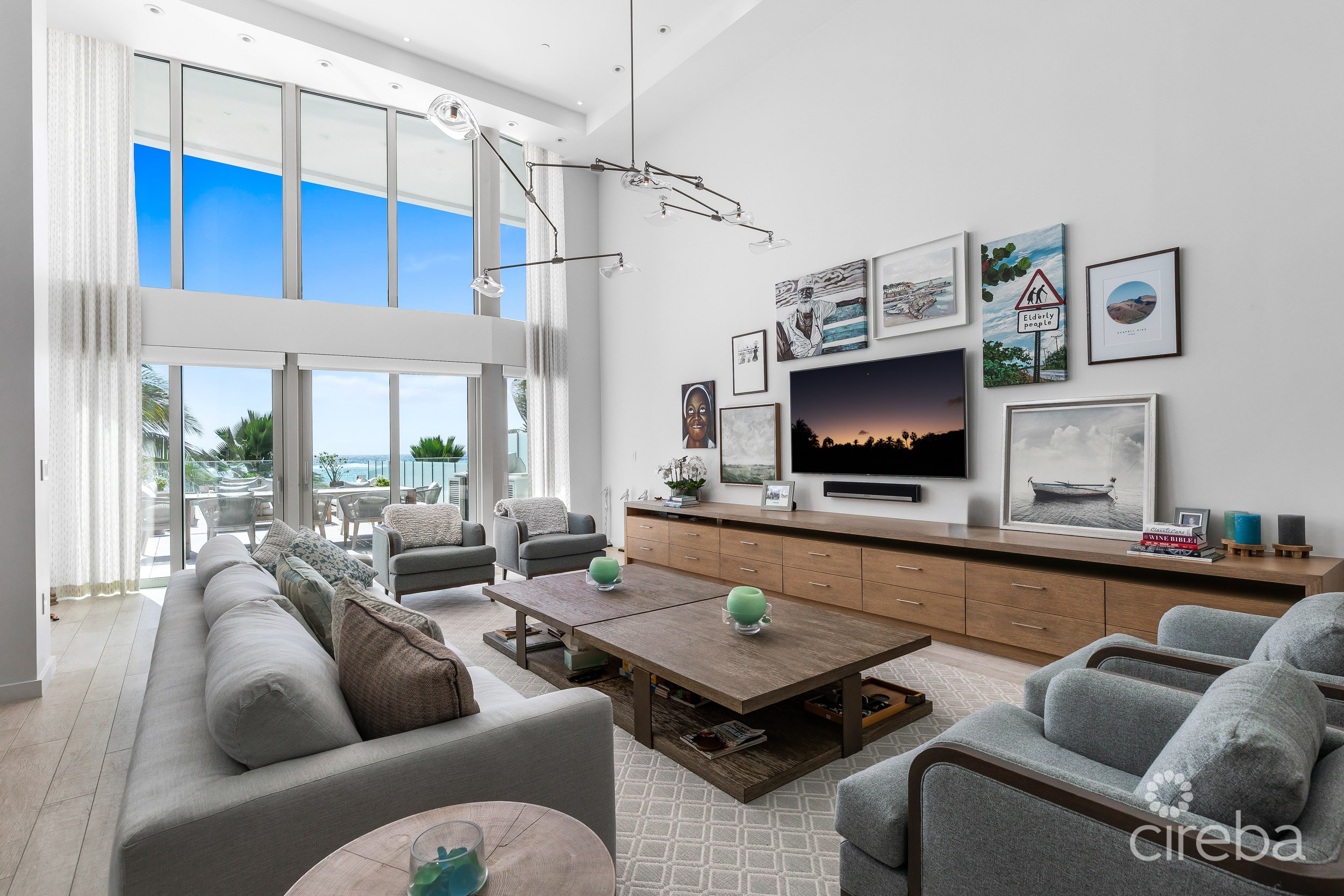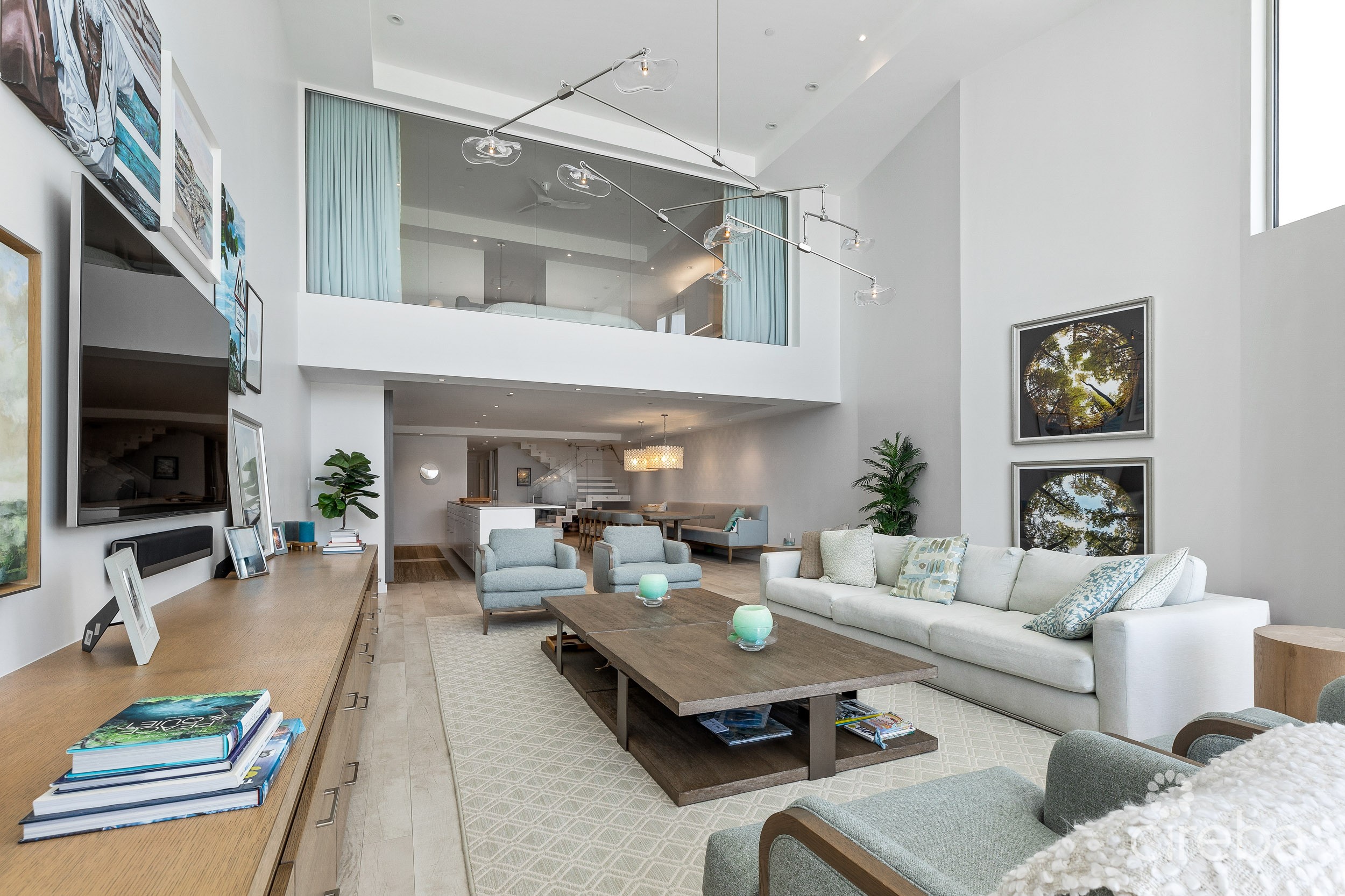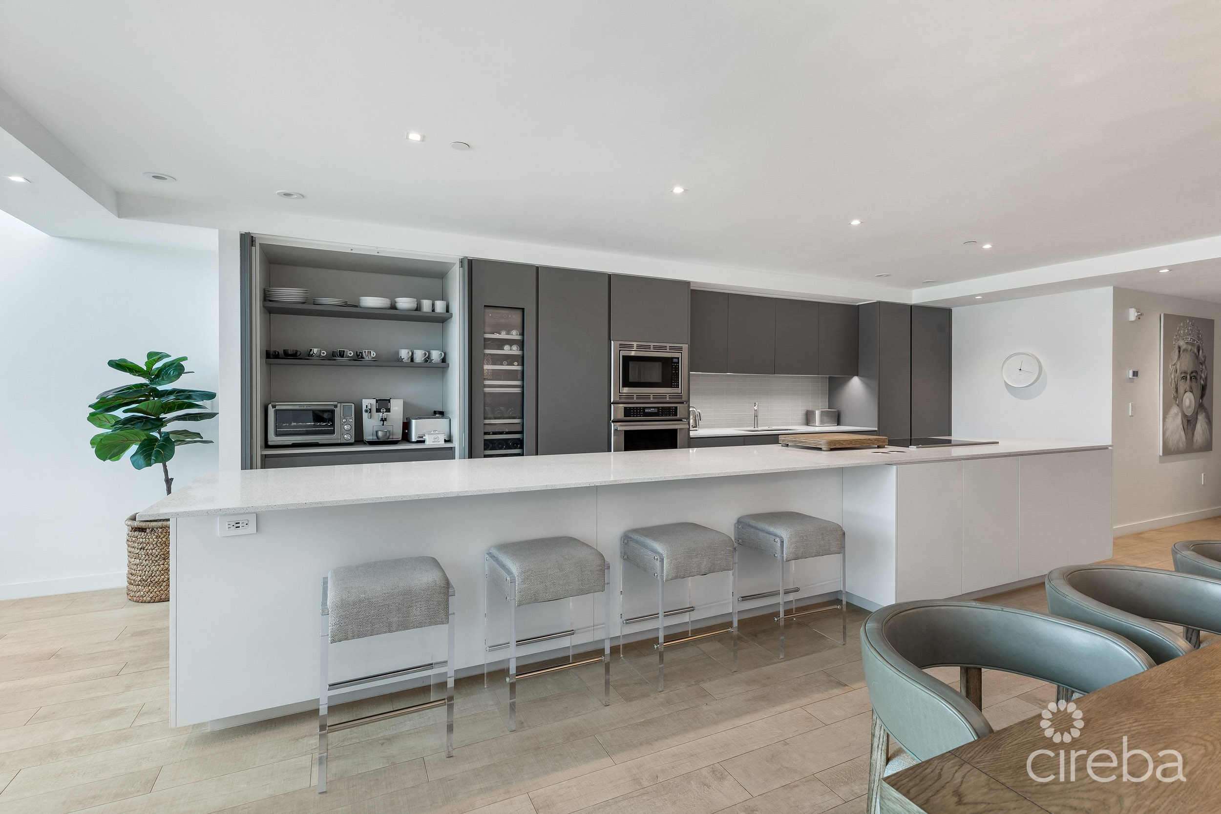 The ground floor is comprised of an open concept kitchen fitted with state of the art Thermador appliances and a large 19 foot island perfect for the chef in your family. Beautifully decorated dining and living room with double height, floor to ceiling windows provide extensive views of the ocean, and your own 1000 square foot private terrace with impressive built-in BBQ for entertaining your friends and family. The remainder of the ground floor consists of a large guest bedroom fitted with built-in wardrobes and ensuite bathroom, a spectacular temperature controlled wine room, upgraded laundry room and half bath.