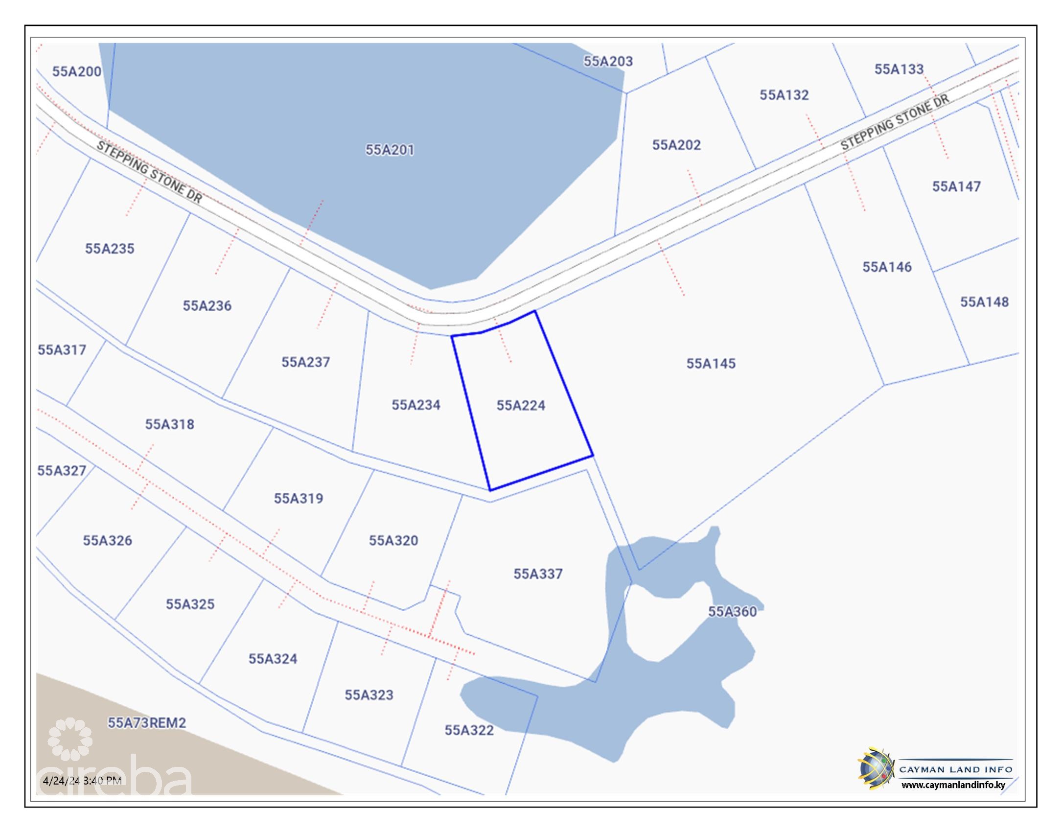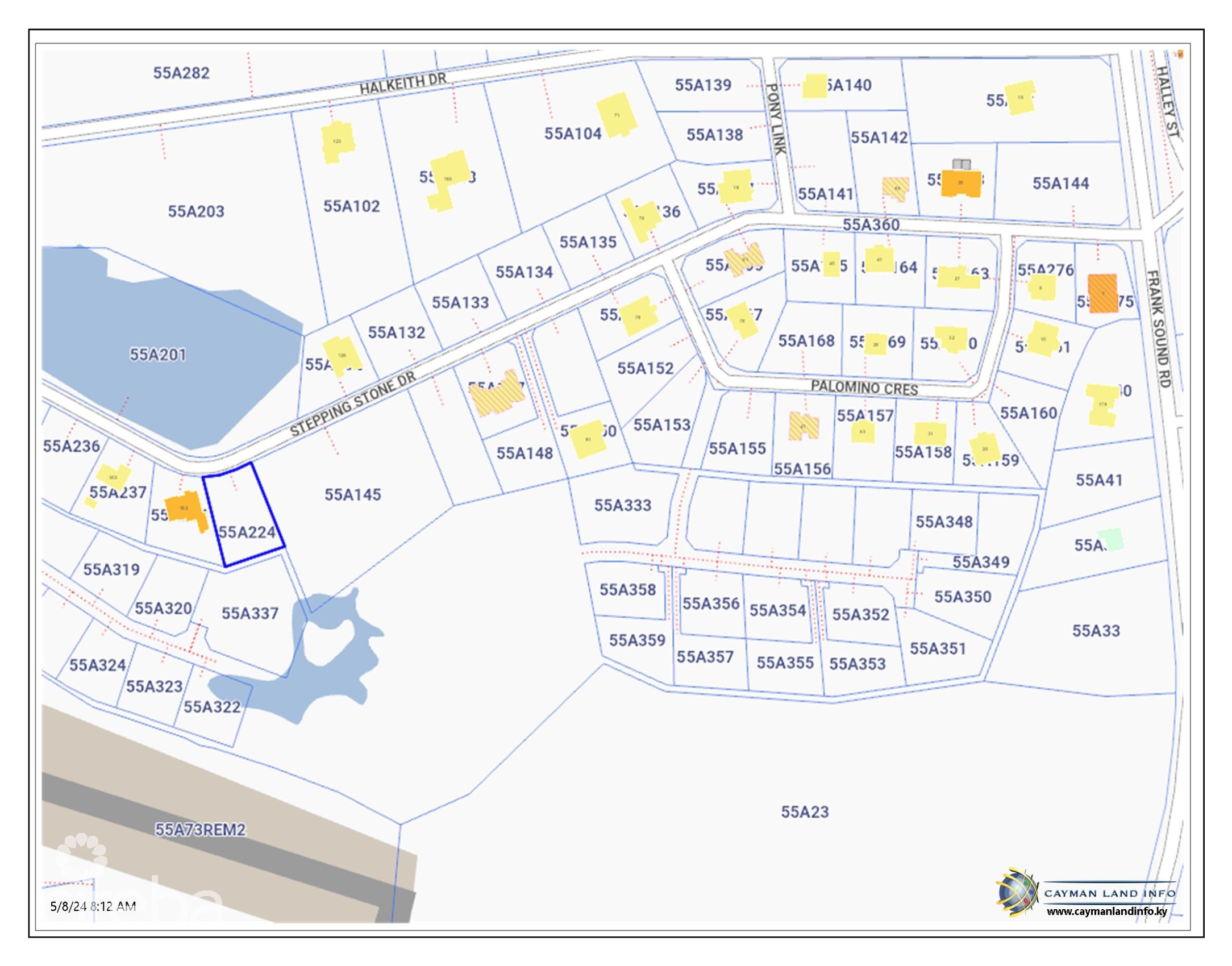 Frank Sound Road and take a left onto Stepping Stone. You will pass about 8 homes on the left, and this lot is before house #153.
