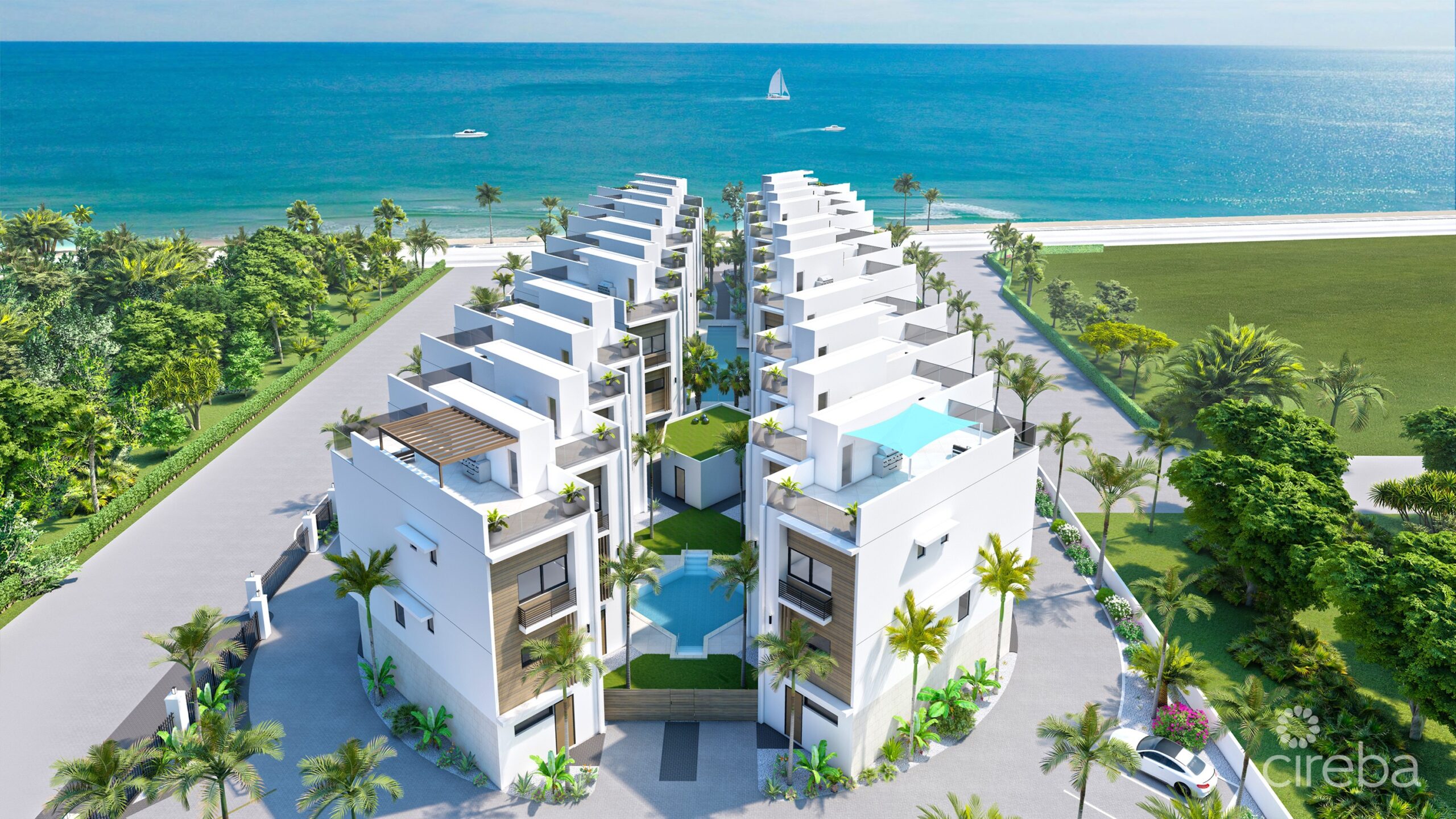 The two bedrooms are located on the second story. With views of the ocean in the background, the primary bedroom features a large walk-in closet and ensuite, spa style bathroom. The second bedroom enjoys an ensuite bathroom with tub and a balcony overlooking the courtyard. A grand private rooftop sunset terrace offering unobstructed ocean views, completes the unit.