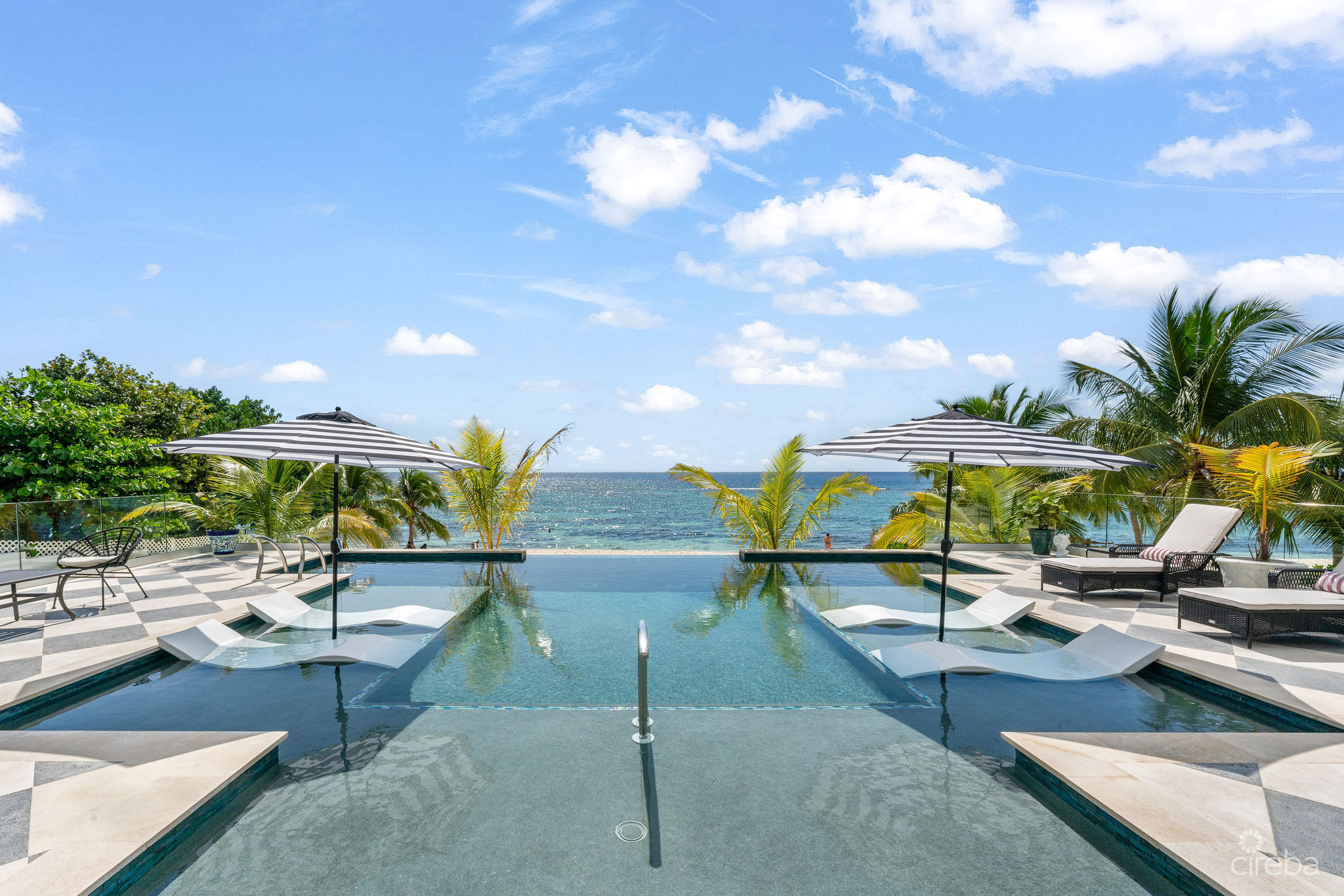 Inside, the cottage boasts four bedrooms, three full baths, two half baths, a carefully curated open plan kitchen and elegant living room, both offering breathtaking ocean views, many indoor and outdoor eating areas, and a spacious office. This property has no shortage of room for relaxation, entertaining and productivity. Electronic blinds offer effortless control over natural light, while the home's elevation of 21 feet above sea level provides unparalleled and unobstructed views of the endless horizon.