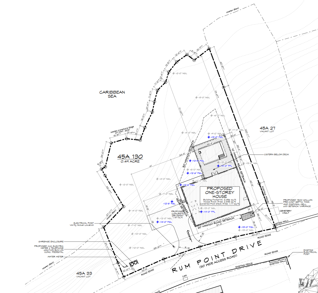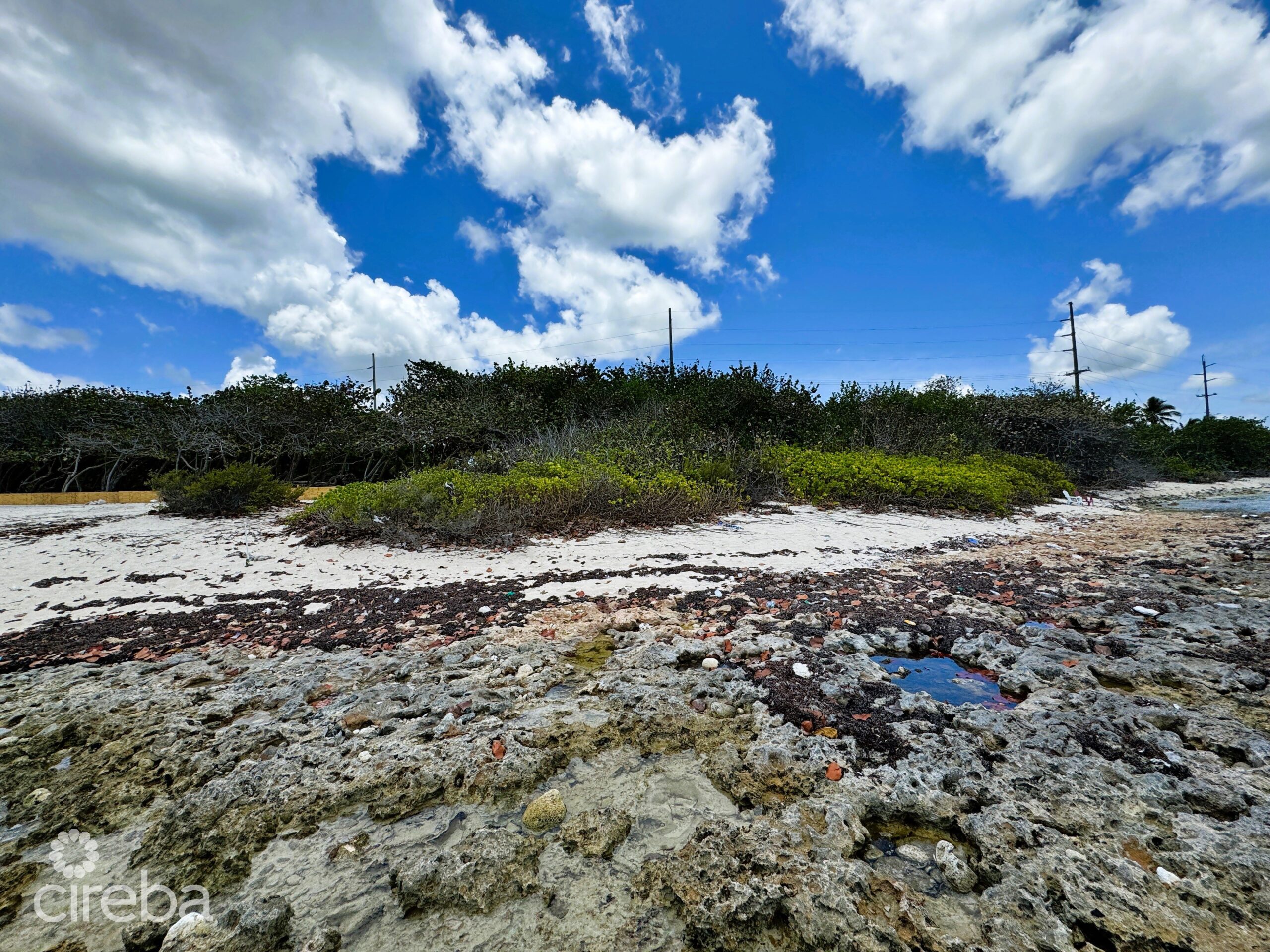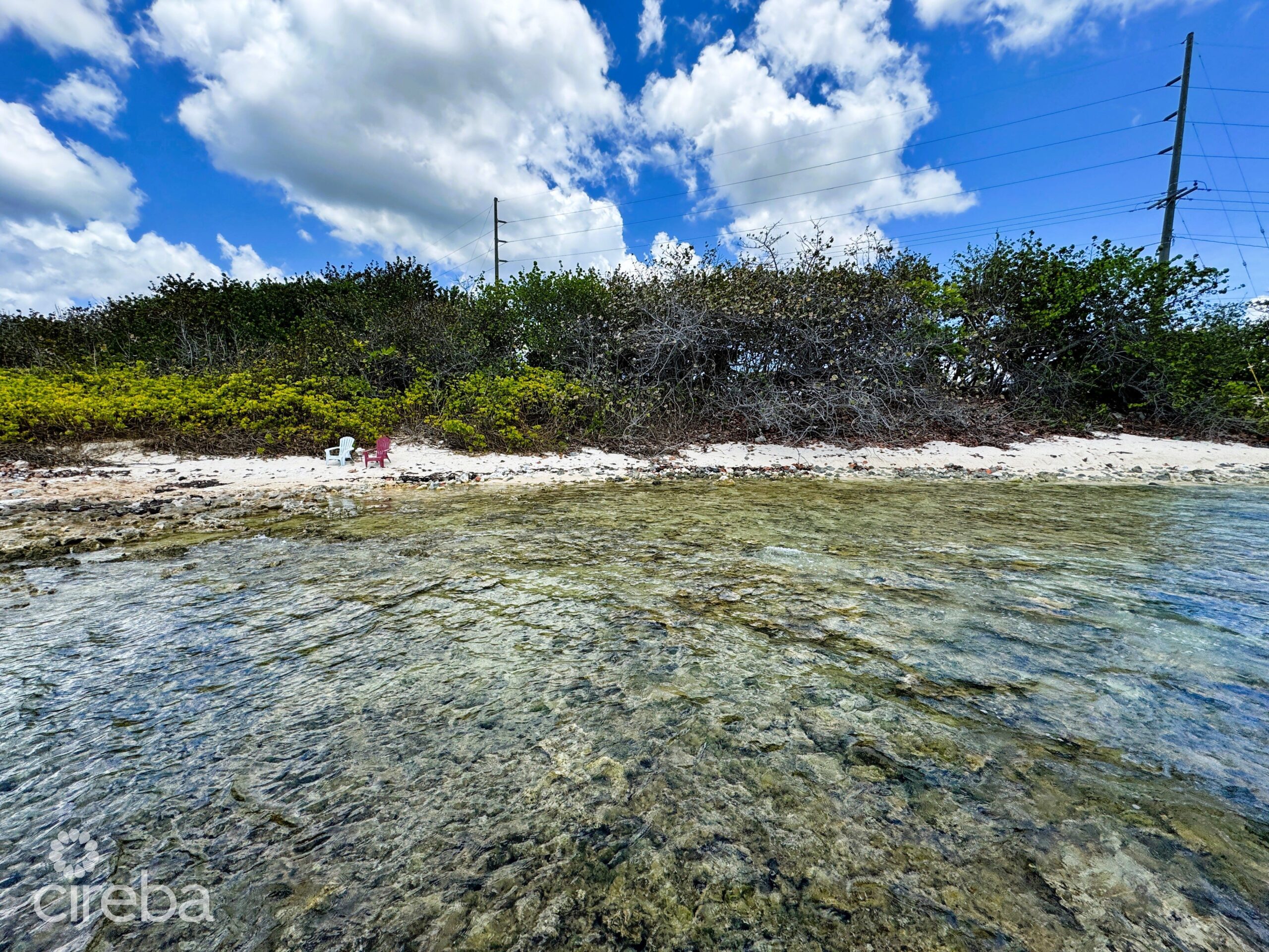 Introducing a prime opportunity: 200 feet of oceanfront land with approved planning for a charming beach cottage and swimming pool. Enjoy exclusive privacy with no neighboring structures. Just a two-minute drive to Chisholm's Grocery for convenience, and ten minutes to RumPoint Club for leisure. This property offers an ideal canvas for your coastal sanctuary, blending coveted oceanfront living with tranquility and accessibility.