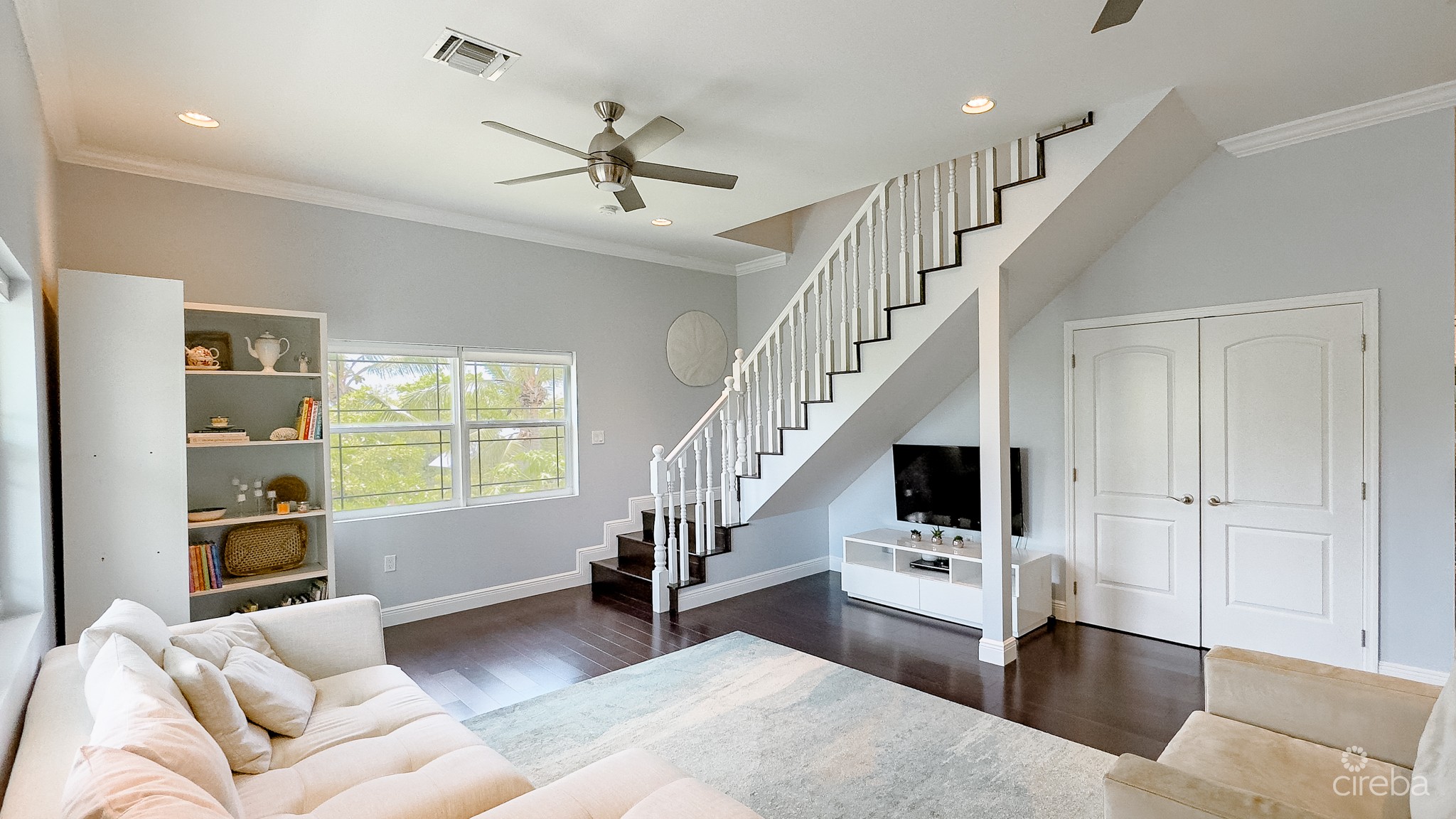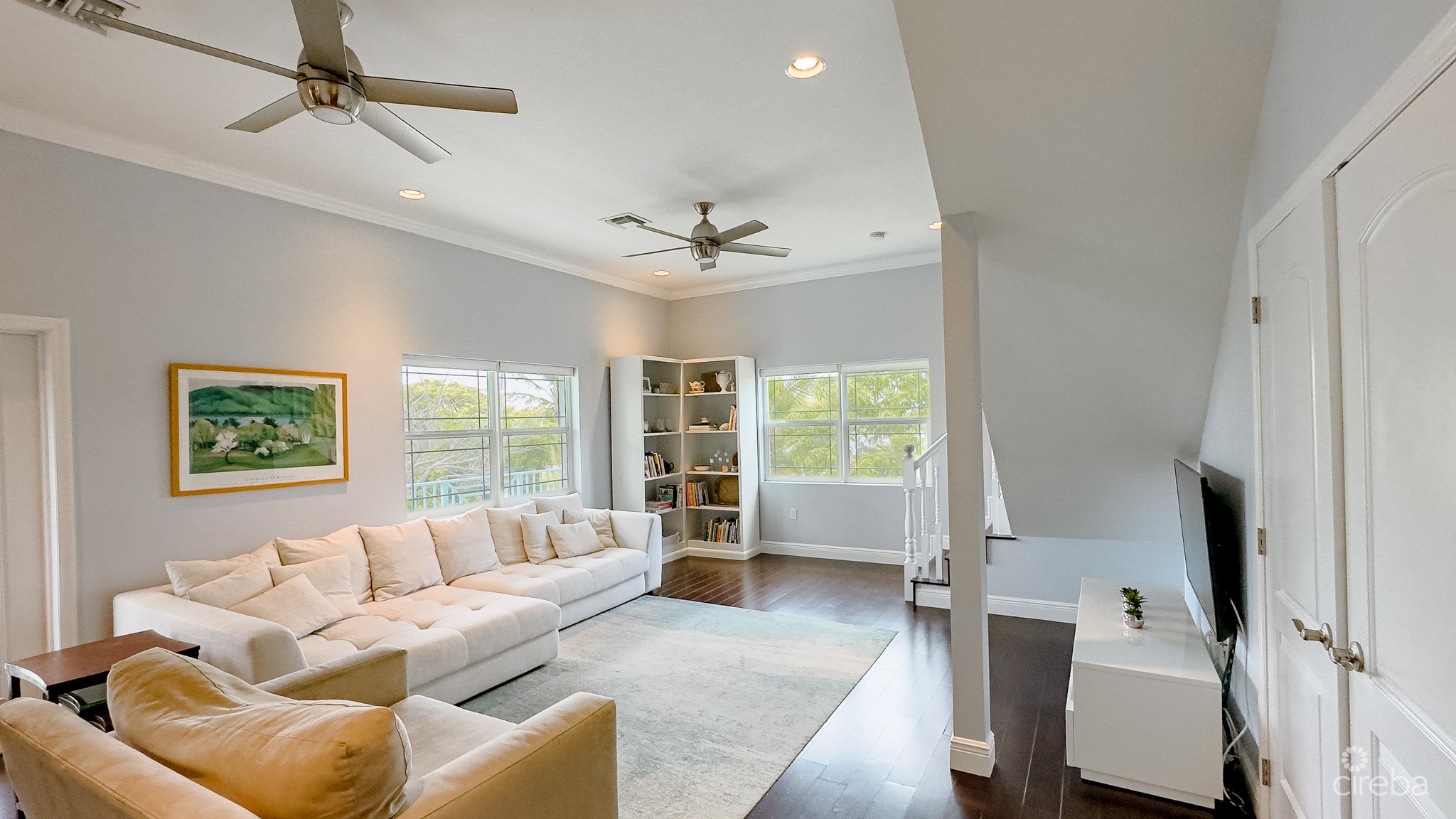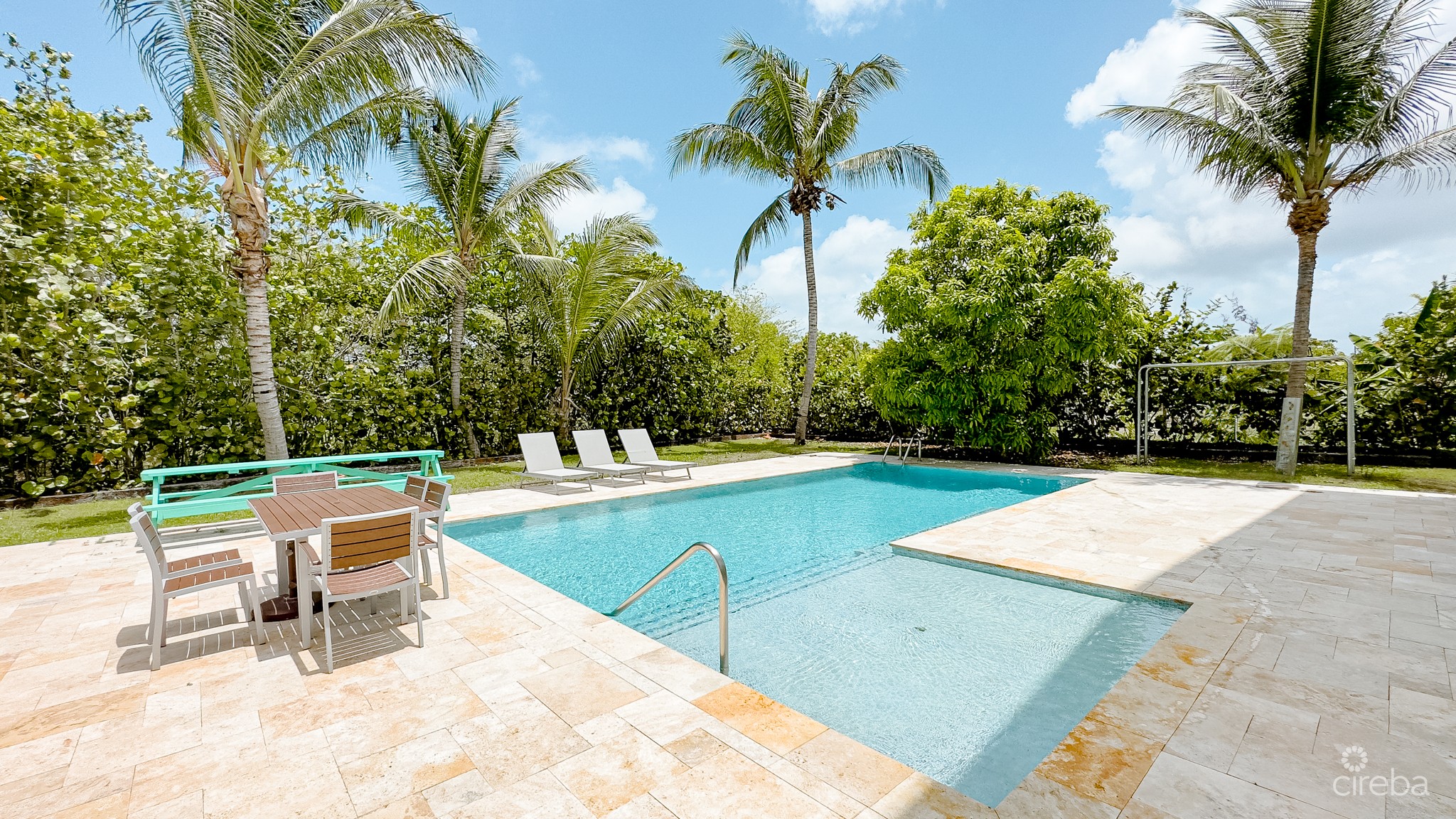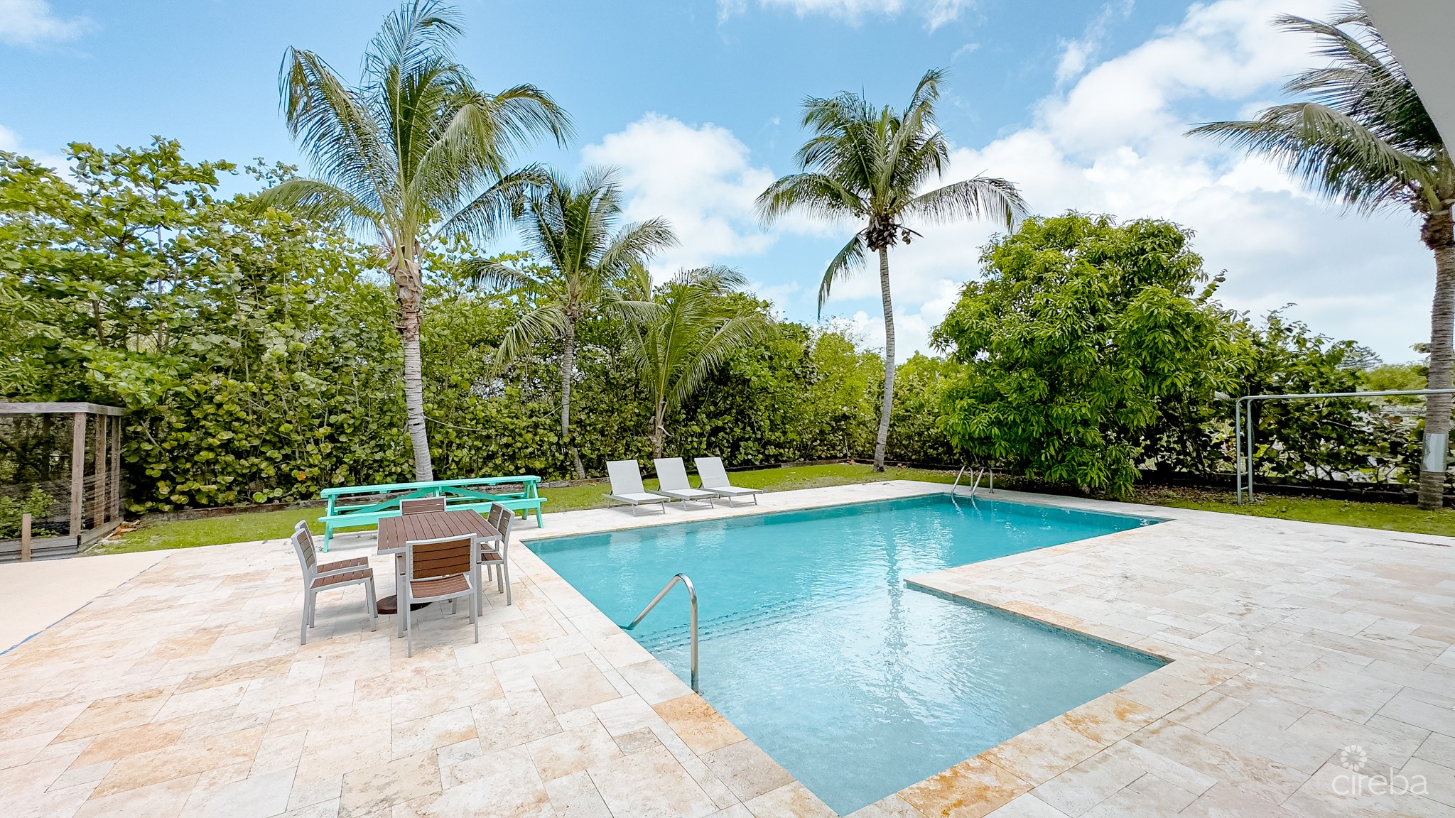 Step outside to discover a large, beautifully landscaped garden. This outdoor space is perfect for children to play and for adults to enjoy barbecues or alfresco dining. The inviting pool offers a refreshing escape during the warm Cayman days, making outdoor living a delight.