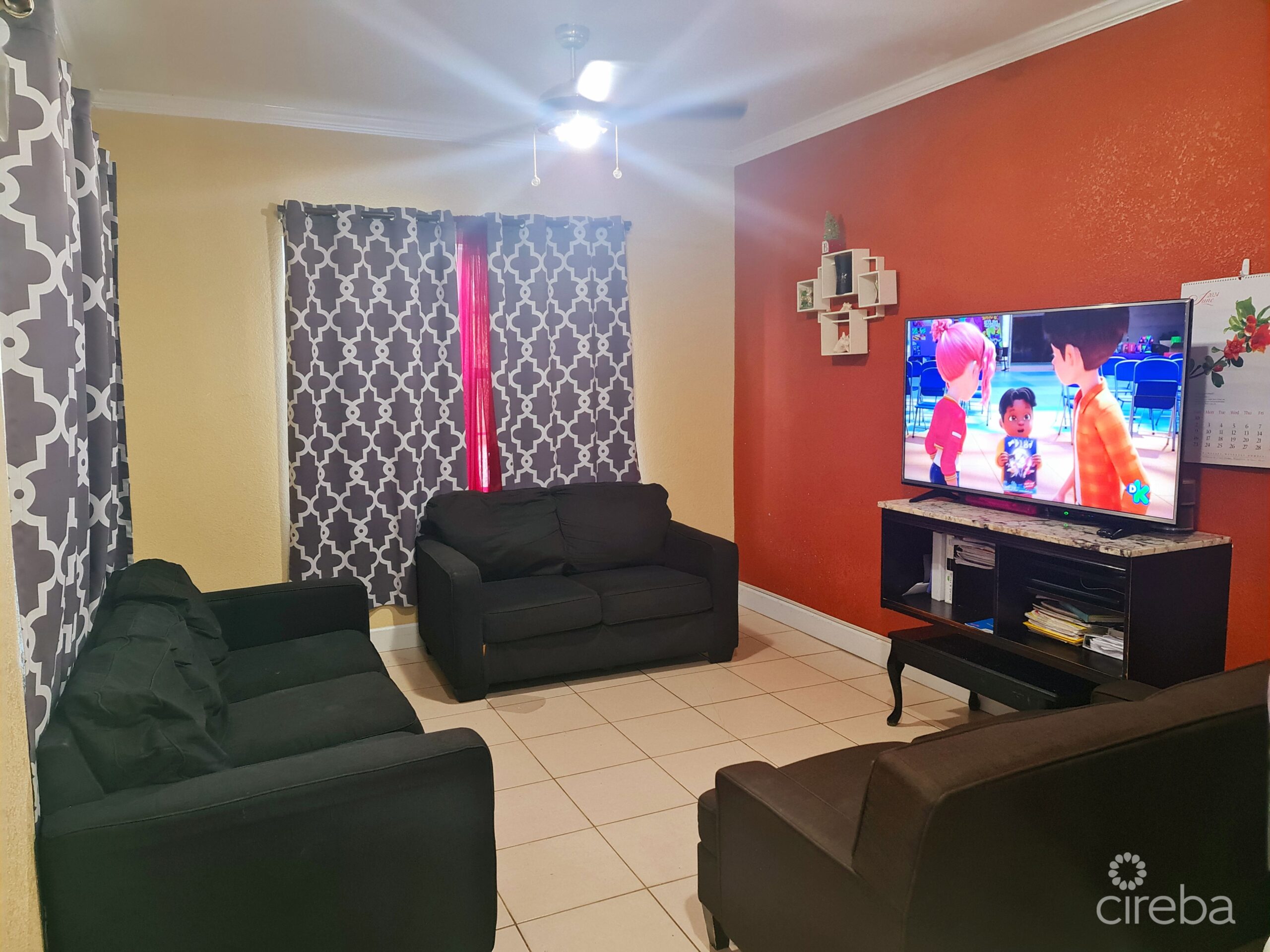 The well-designed kitchen is offering ample counter space . Adjacent to the kitchen is a cozy living room, providing a warm and inviting atmosphere for family gatherings.