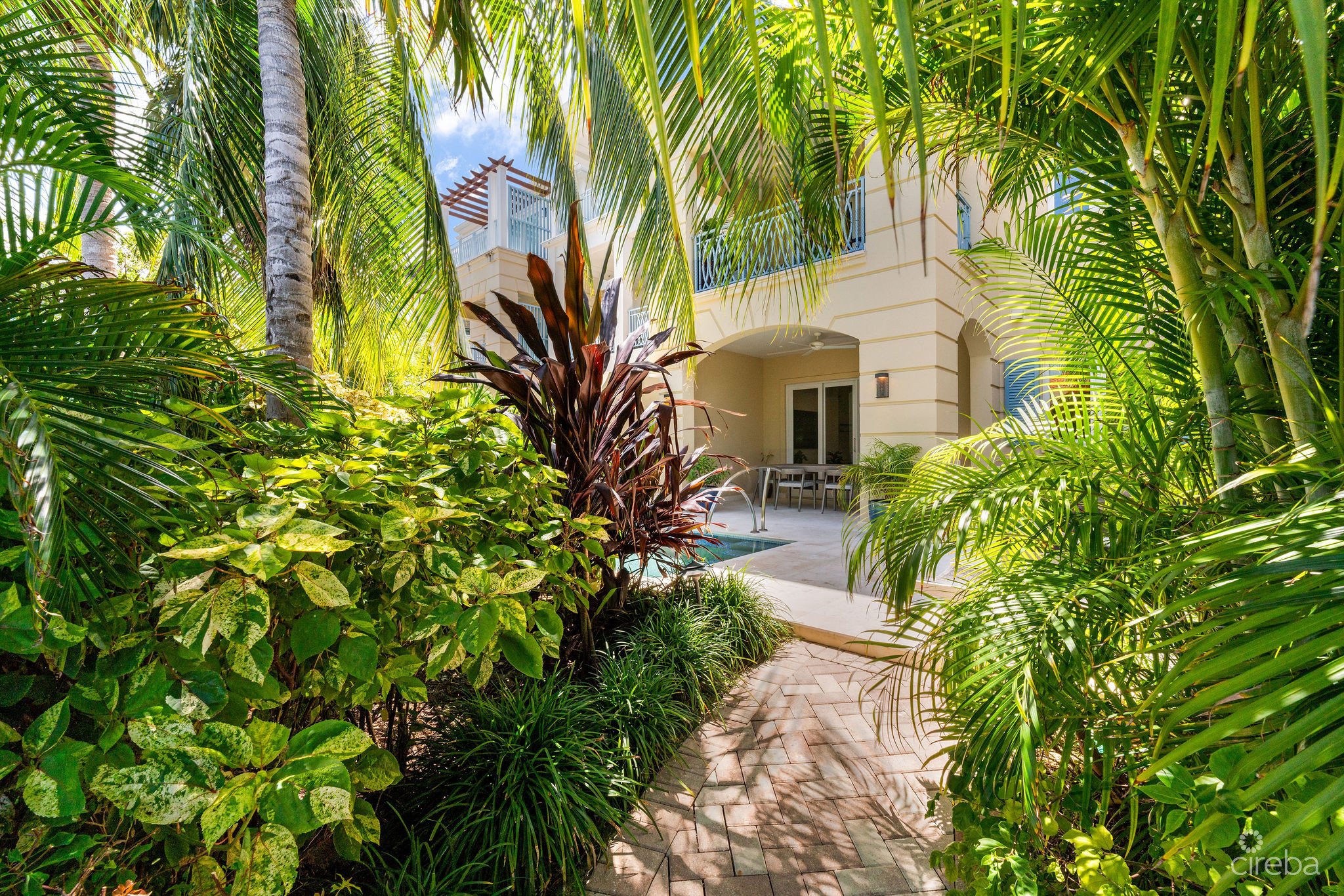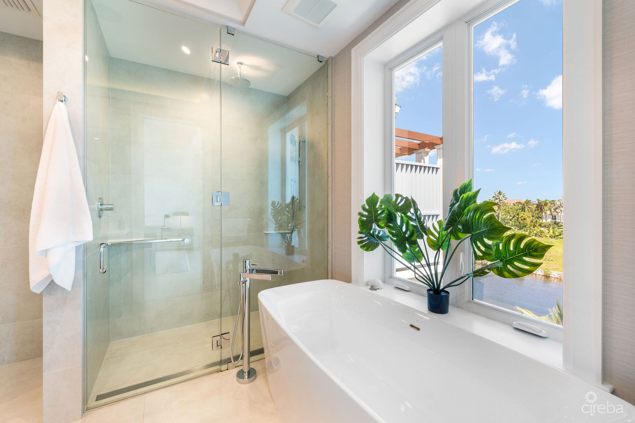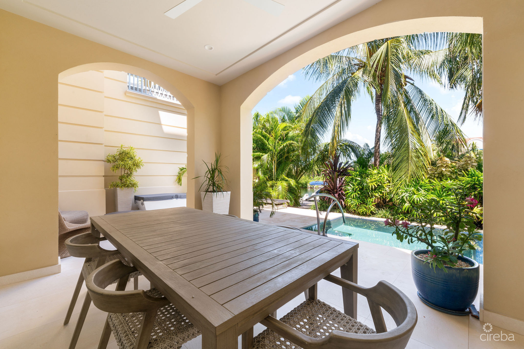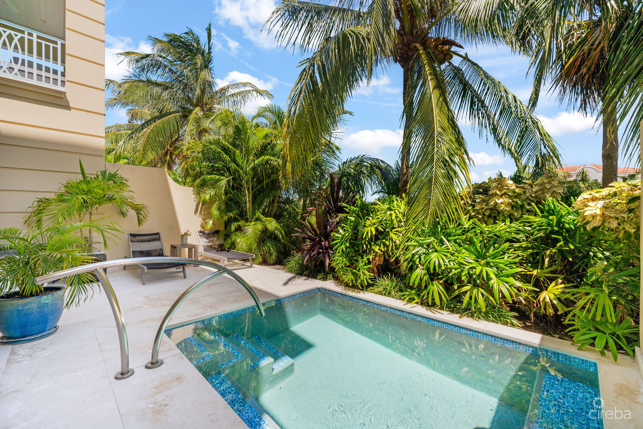 The upper-level primary suite serves as a private sanctuary, complete with tranquil canal views and an expansive en-suite bathroom reminiscent of a personal spa. The main level’s botanical-rich balcony provides a serene retreat, perfect for relaxing while enjoying the picturesque canal vistas. Complemented by a secluded plunge pool set among lush greenery, it offers a private oasis ideal for unwinding in privacy.
